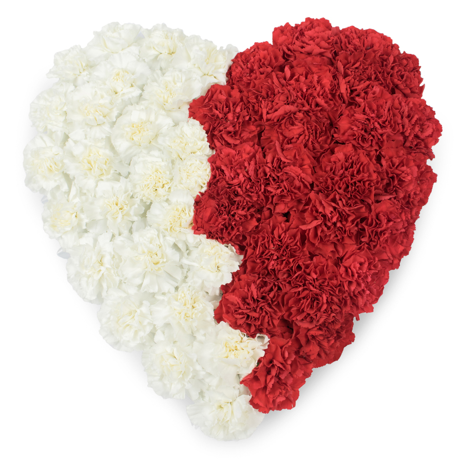 Express your love with our romantic mixed carnations heart bouquet. This elegant arrangement combines white and red carnations, meticulously hand-selected for their stunning appearance and freshness.